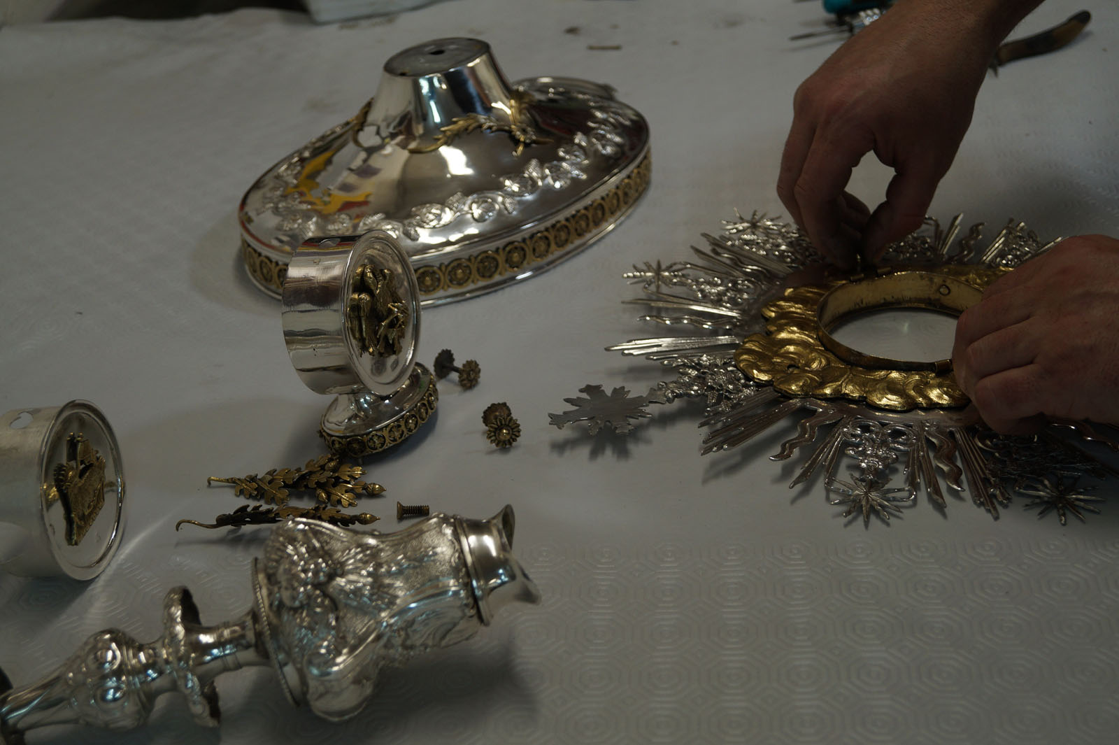 En el día a día me encuentro el reto de diseñar, fabricar o restaurar obras especiales y exclusivas, así como esculturas y mobiliario en diferentes metales, siendo mi especialidad, la orfebrería religiosa tanto en la restauración y conservación, como la fabricación de piezas ex profeso. Para todo ello es necesario utilizar desde los sistemas más avanzados hasta las técnicas artesanales más antiguas, que dan fortaleza a las piezas para perpetuarse en el tiempo.