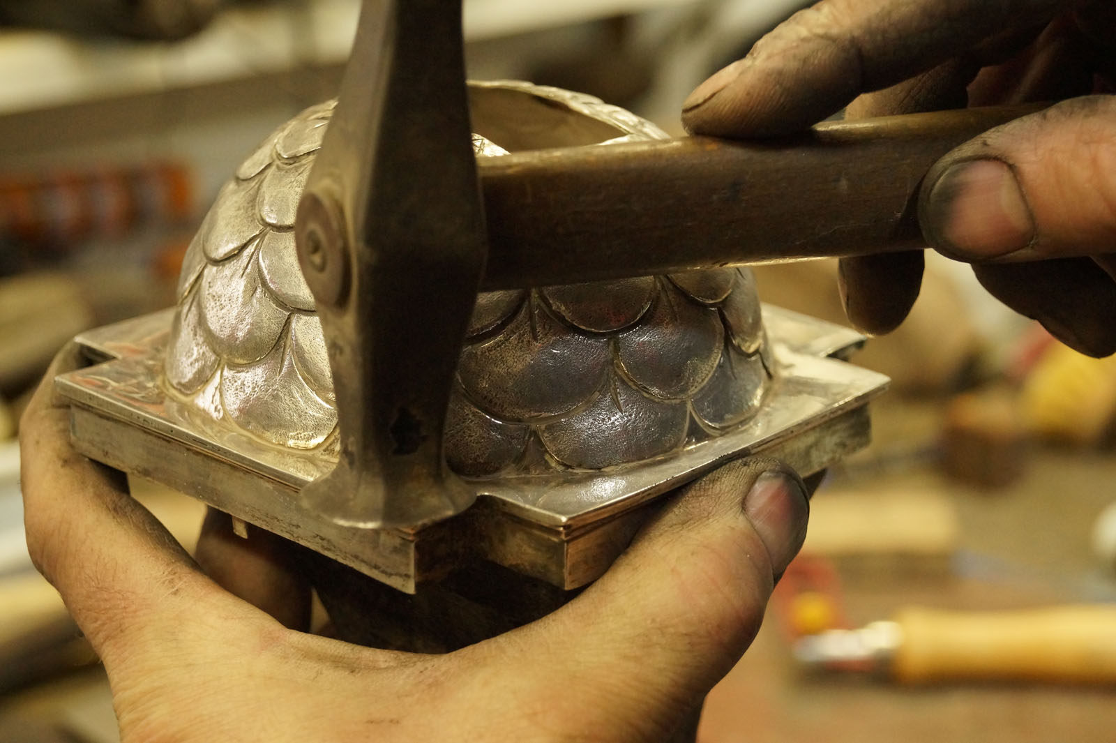 - Sergio Romo de Arce -Mi trayectoria comienza hace más de 20 años en el taller familiar, “J. Muñoz”, dedicado a la restauración de bronces y platería. Allí comencé a adquirir los conocimientos de profesionales, con toda una vida dedicada a trabajar el metal en sus muy diferentes campos.